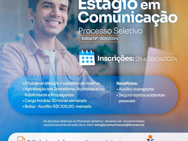 Concurso Público para o Conselho Regional de Engenharia e Agronomia do Rio Grande do Norte - CREA/RN 27 de Março de 2024 Saiba mais →