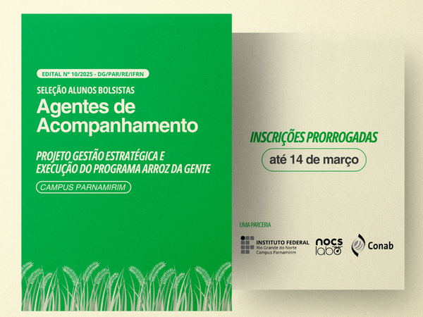 Inscrições abertas para Agentes de Acompanhamento do projeto Gestão Estratégica e Execução do Programa Arroz da Gente 10 de Março de 2025 Saiba mais →